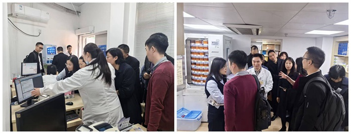 下午,专家们实地参访了福建医科大学附属协和医院药学部,深入多个核心区域进行观摩。在药学门诊,专家们详细了解了该院药师为患者提供用药评估、重整及个性化指导的服务流程,并对标准化运营模式表示肯定。中心药房的智能存储系统、自动化调剂设备及药品追溯管理,展现了信息化在提升效率与安全中的关键作用。门诊药房的快速响应机制与便民服务设计,体现了“以患者为中心”的服务理念。在外科药房/静配中心(PIVAS),专家们观摩了无菌配置环境、标准化流程及质量控制体系,深入探讨了静脉用药安全管理的实践细节。在临床药学室与临床药学实验室,重点关注了药师参与临床路径、治疗药物监测及科研转化成果。