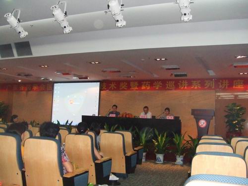 广东省药学会医院药学科学技术奖是经广东省科技厅核准的、我省唯一的医院药学专门奖项。为充分发挥本奖的专家资源,在葛兰素史克公司的大力支持下,我会于今年开始在各区市举办科技奖巡讲活动。广州市番禺区的巡讲于2010年8月20日在番禺中心医院举行。会议由番禺中心医院药剂科杨辉主任主持,欧阳玉林副院长和我会郑志华副秘书长致辞。会议邀请了暨南大学附属第一医院吴晓松主任和广州中医药大学第一附属医院唐洪梅主任就药品安全与管理、疏肝健脾止泻法对腹泻型IBS的作用机理研究进行演讲,还邀请了南方医院心内科郭志刚主任、中山大学附属第三医院感染科邓子德主任分别就抗凝和乙肝药物的临床应用进行了介绍。为使更多药师接受培训,会议安排在周末下午下班后进行。来自番禺各医院约100余名药师参加了会议。
